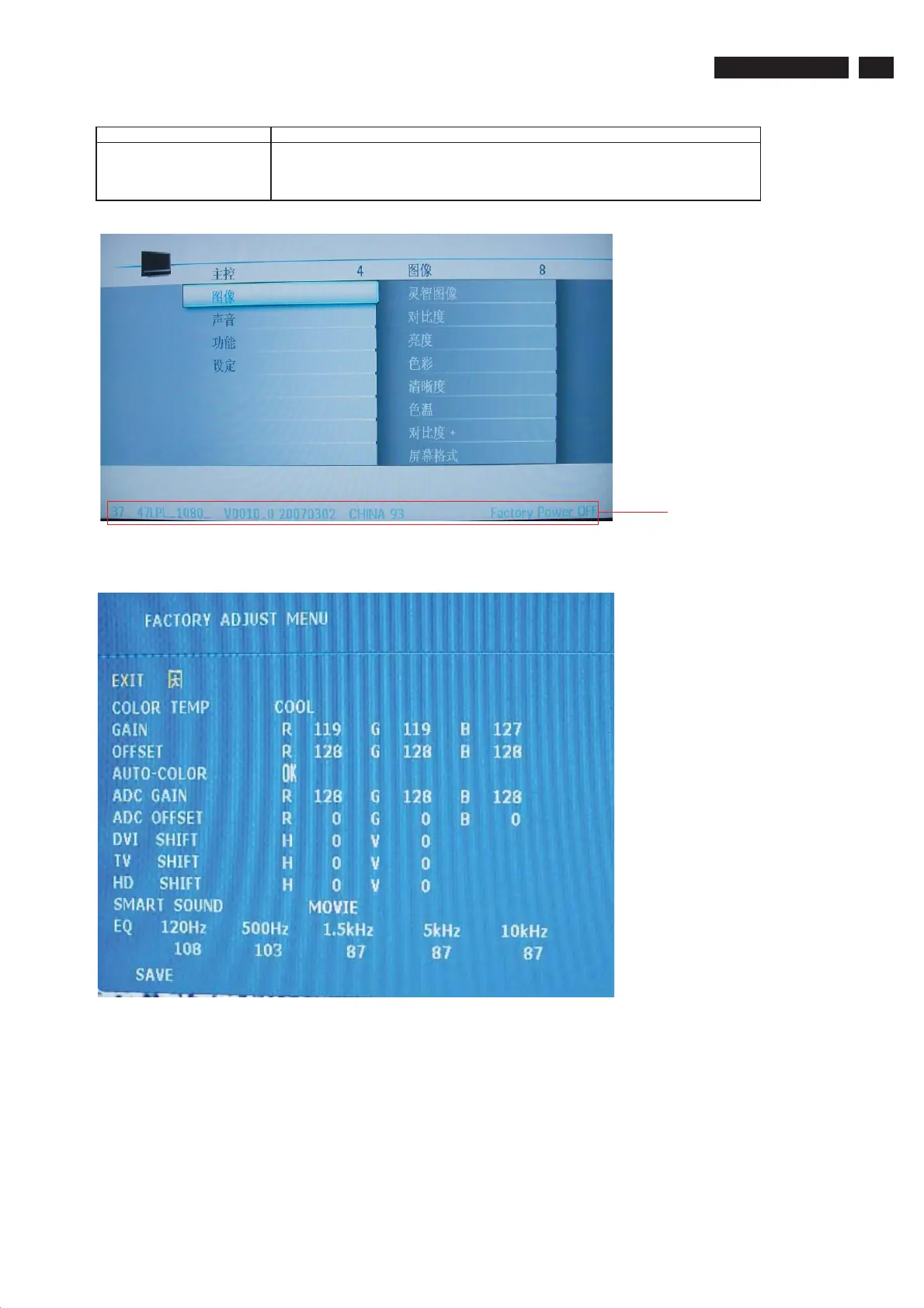 signal in. Monitor will enter factory mode automatically once power is off.