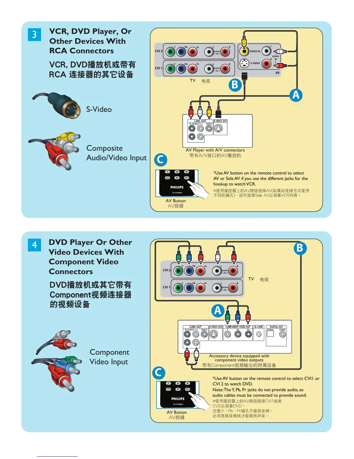 Note: The Y, Pb, Pr jacks do not provide audio, so