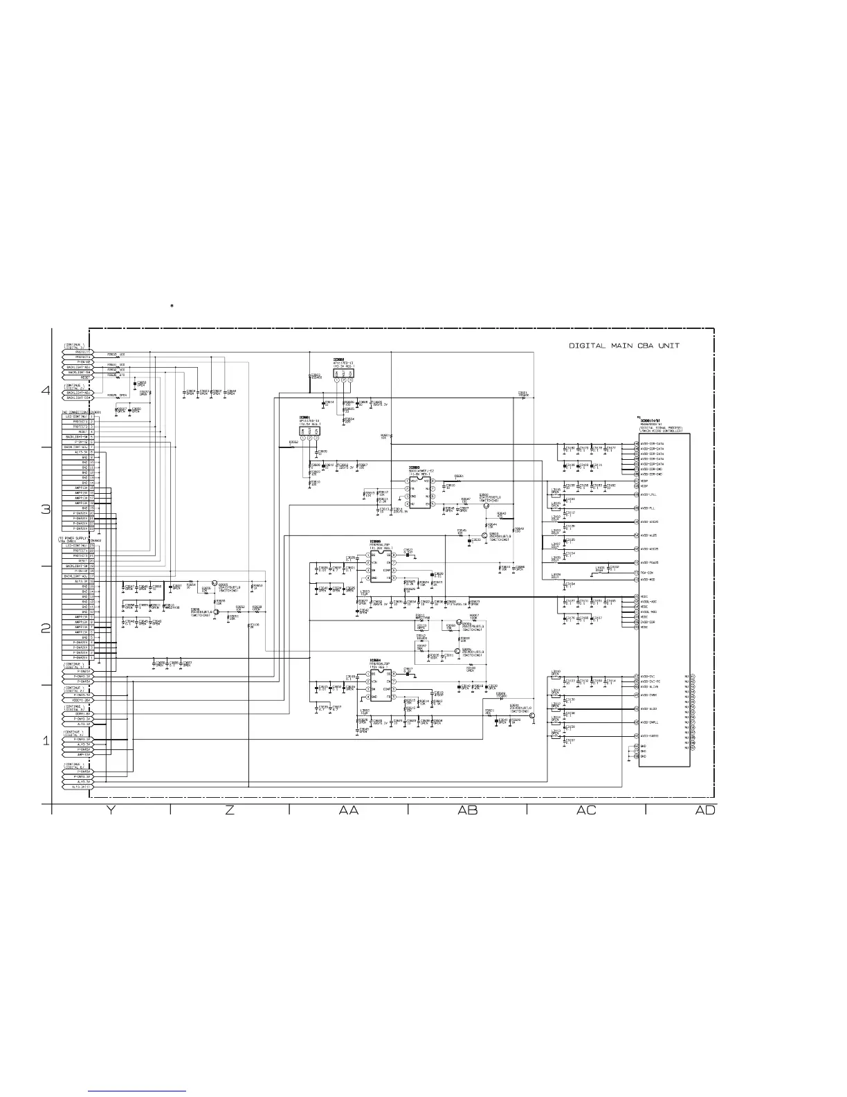 IC3001 is divided into five and shown as IC3001 (1/5) ~ IC3001 (5/5) in this Digital Main Schematic Diagram Section.