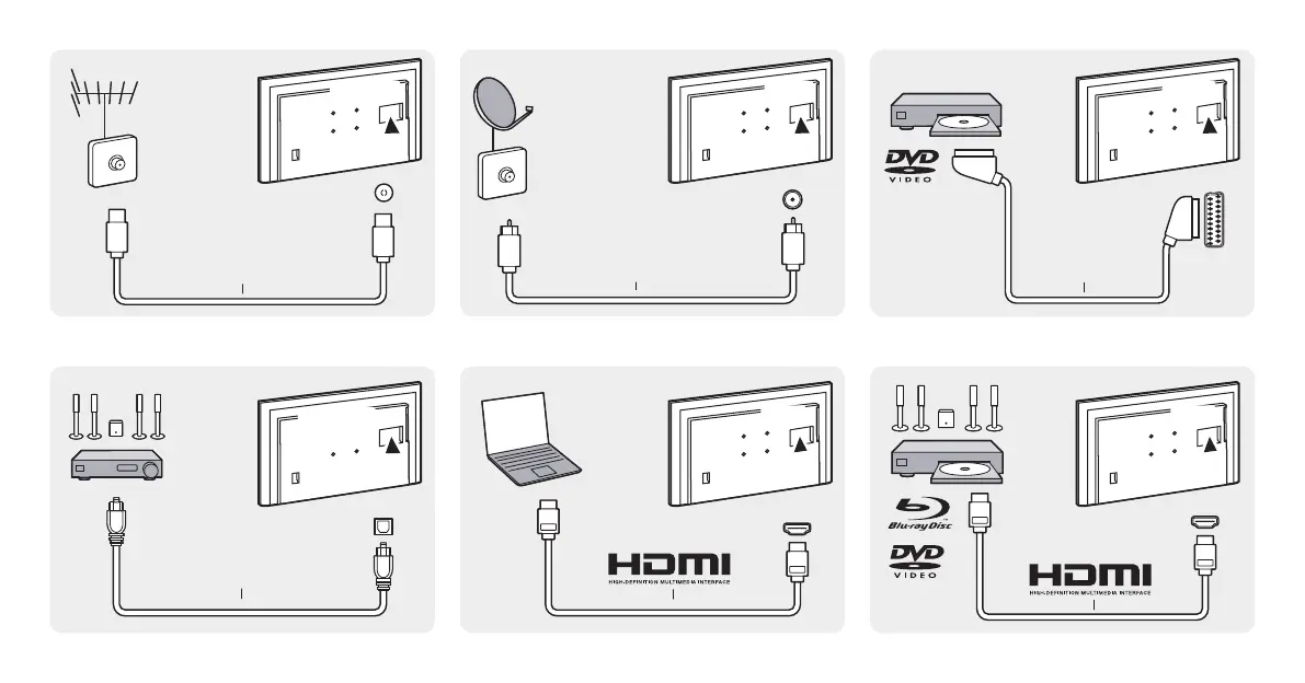 Philips 40PFH4100/88 - External Device Connectivity Options; Coaxial and Satellite Connections; SCART and TOSLINK Connections; HDMI Connection