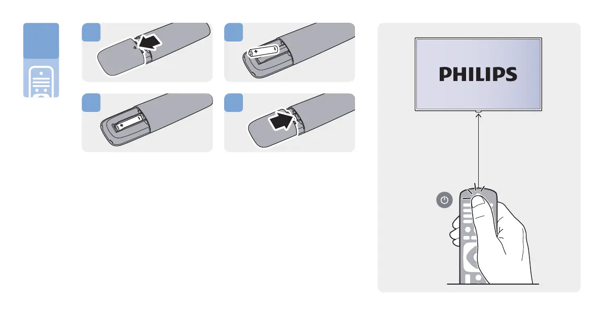 Philips 40PFH4100/88 - Remote Control Setup and Operation; Remote Control Battery Installation