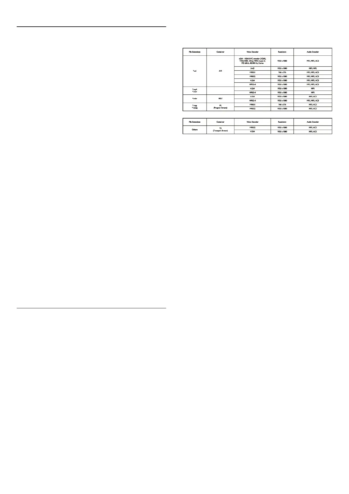 - USB 2.0 (FAT / FAT 32 / NTFS): only connect USB devices
