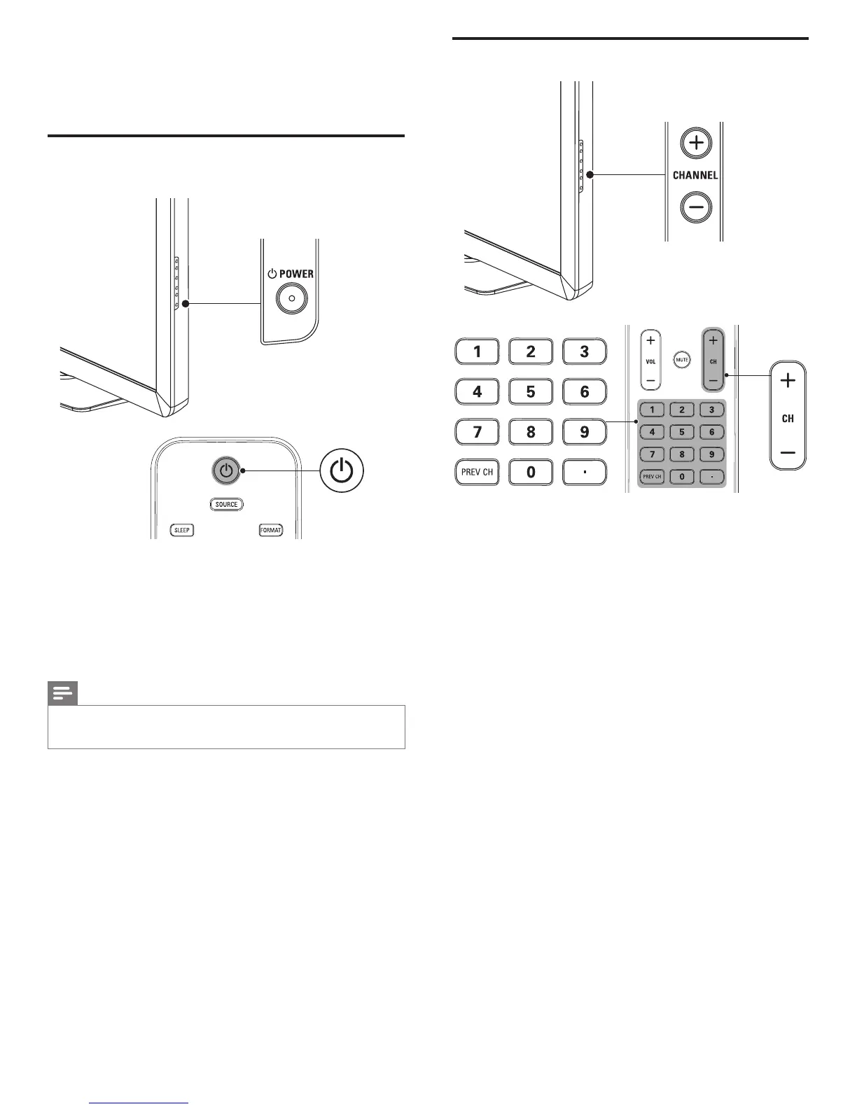 Press CHANNEL + / − on the side of the TV. For digital channels, press