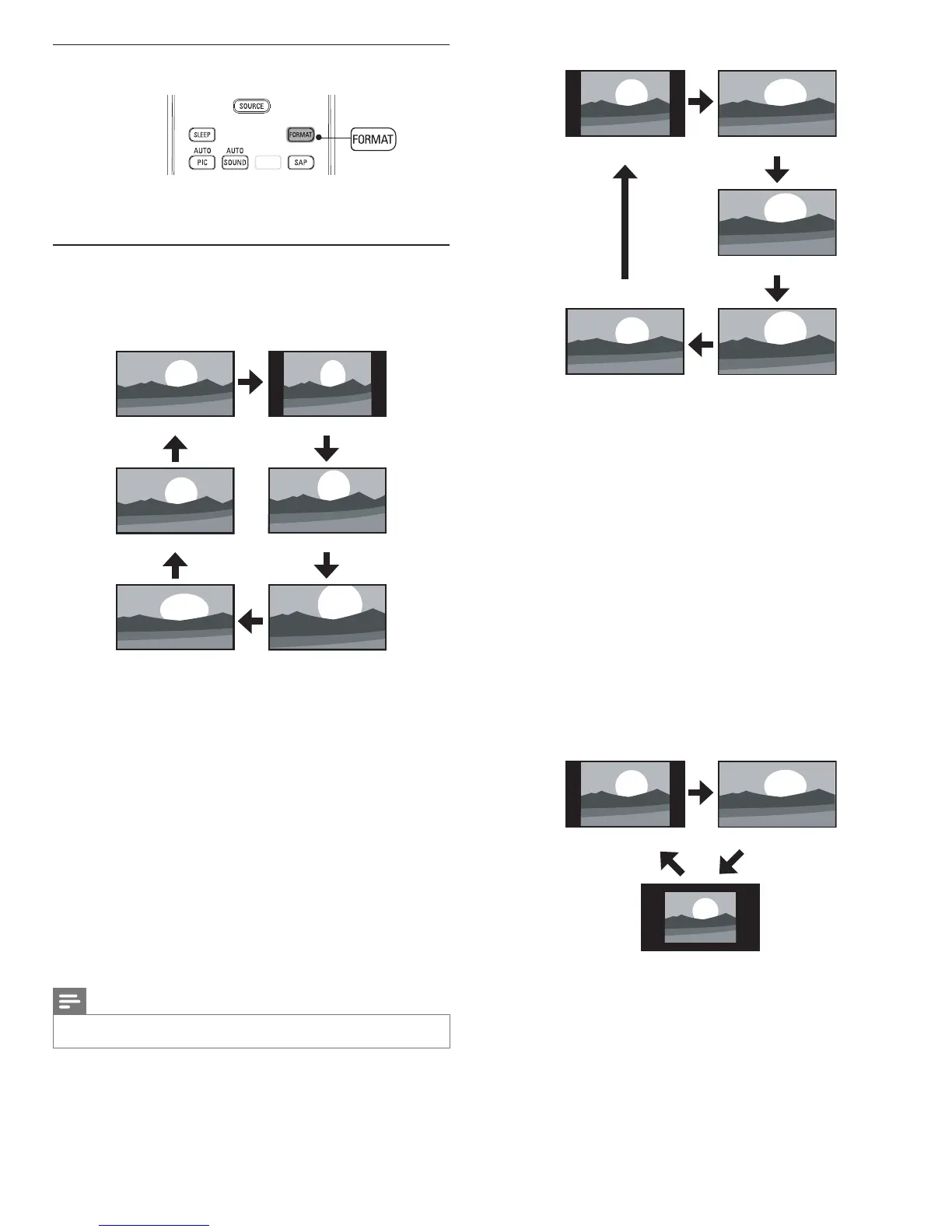 16:9 or 4:3 video signal. And 3 types of display modes can be selected