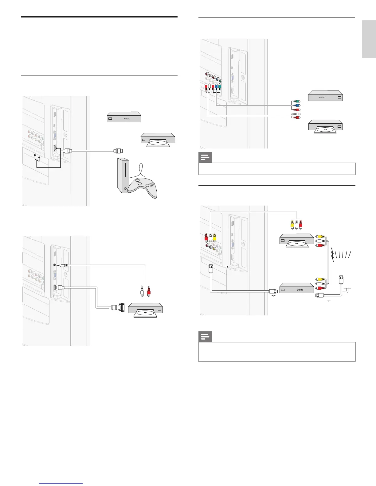 • When you connect cables, match the cable colors to the connectors on the TV.