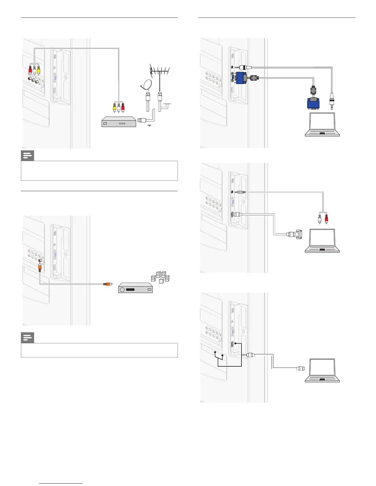 • When you connect cables, match the cable colors to the connectors on the TV.