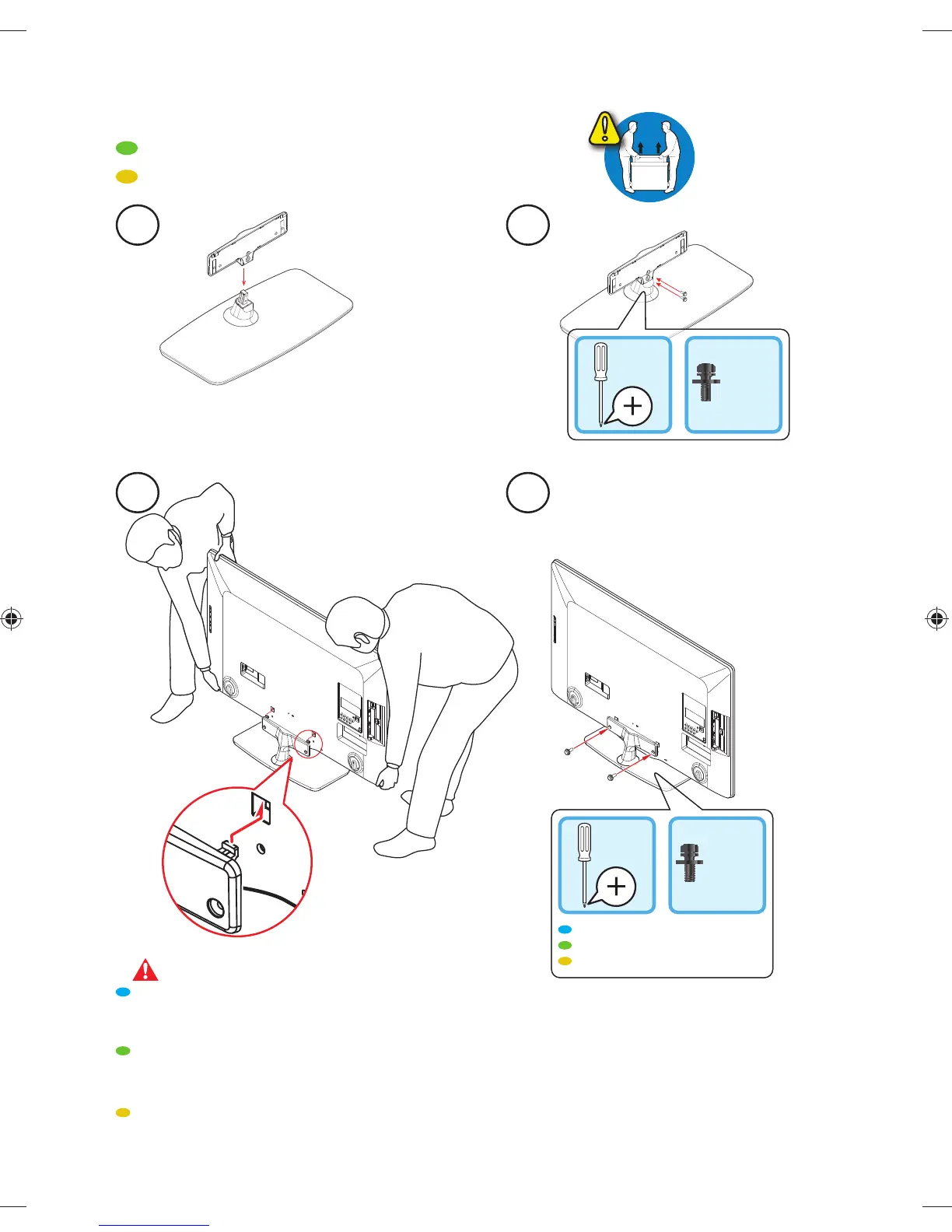 • Large screen TVs are heavy. 2 people are required to carry and handle a large screen TV.
