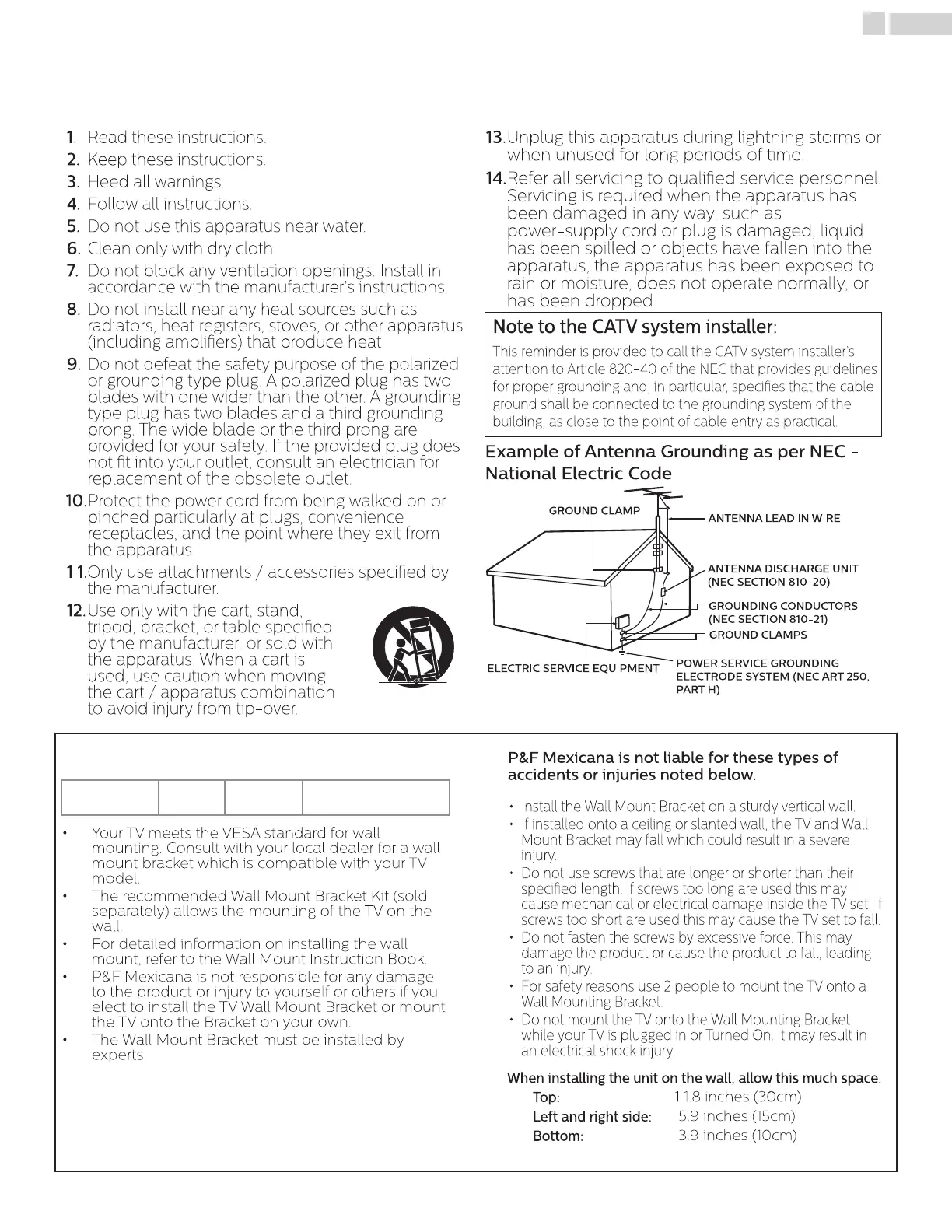 • If installed onto a ceiling or slanted wall, the TV and Wall