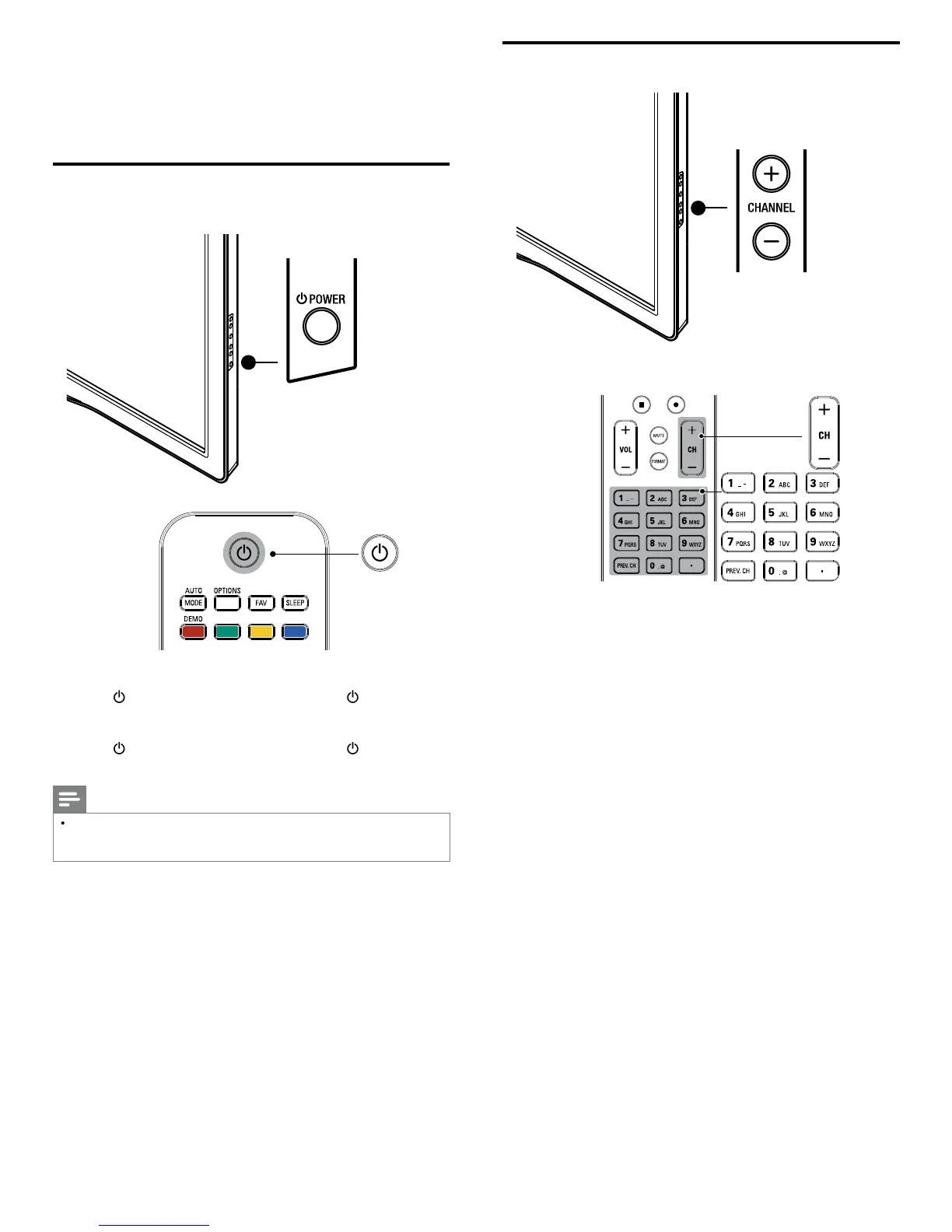 HANNEL + / − on the side of the TV
