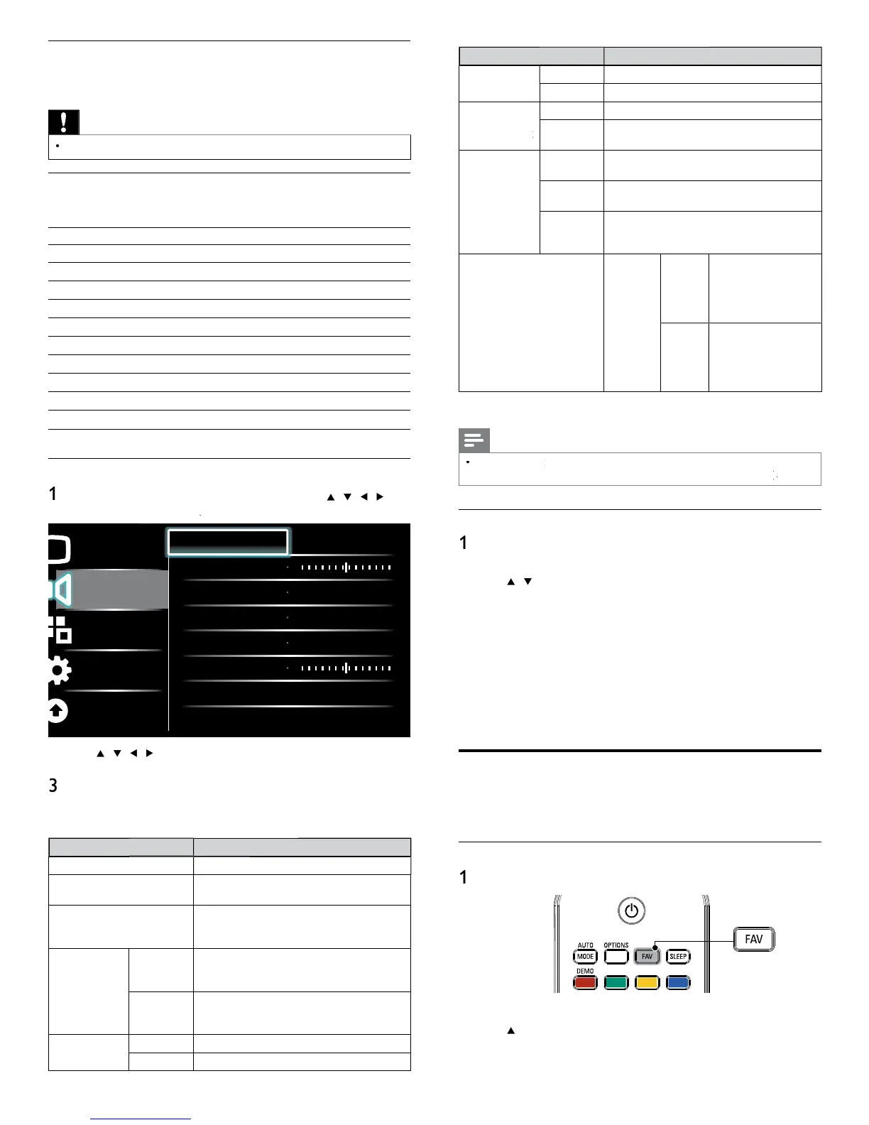 he following sound settings can be confi gured. Depending on the