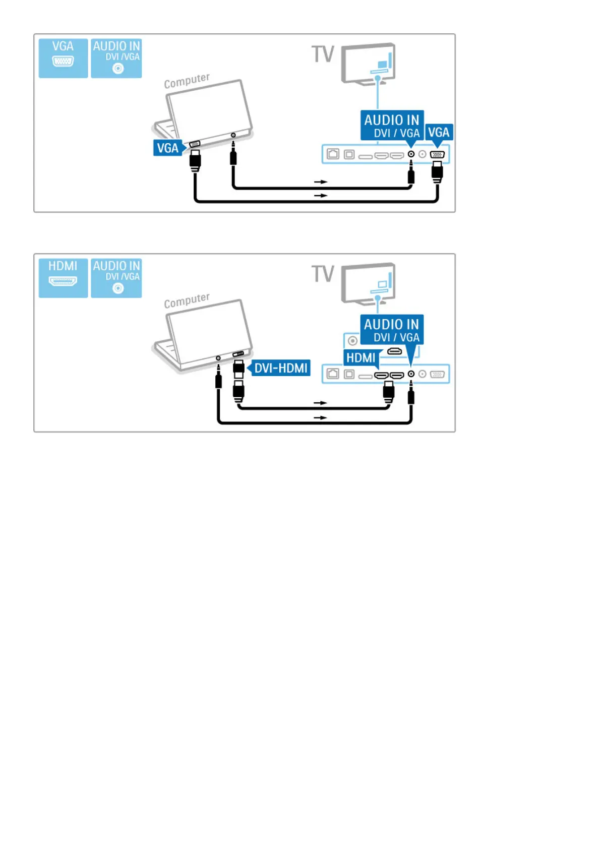 Use a DVI to HDMI adapter to connect the PC to HDMI and an
