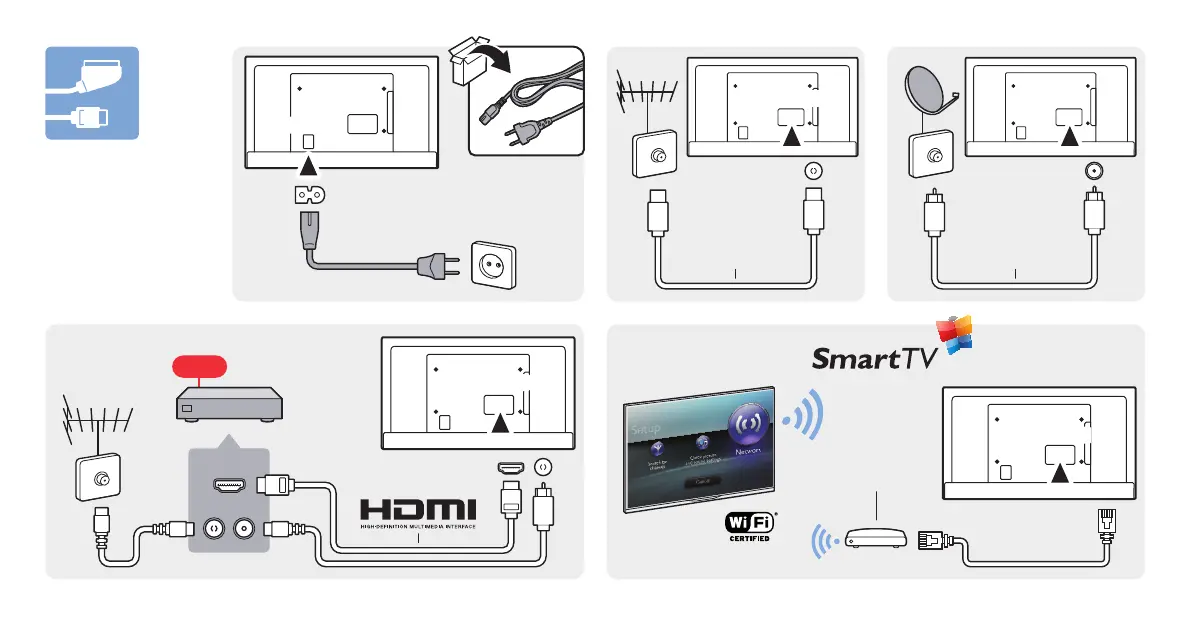 Philips 40PFS5709/12 - Connecting Devices; Power and Antenna Connections; Audio;Video Input Ports; Network and USB Connections