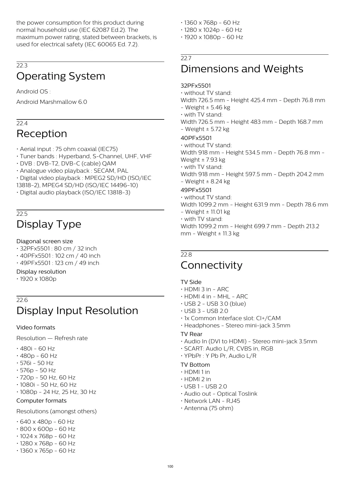 • 32PFx5501 : 80 cm / 32 inch
