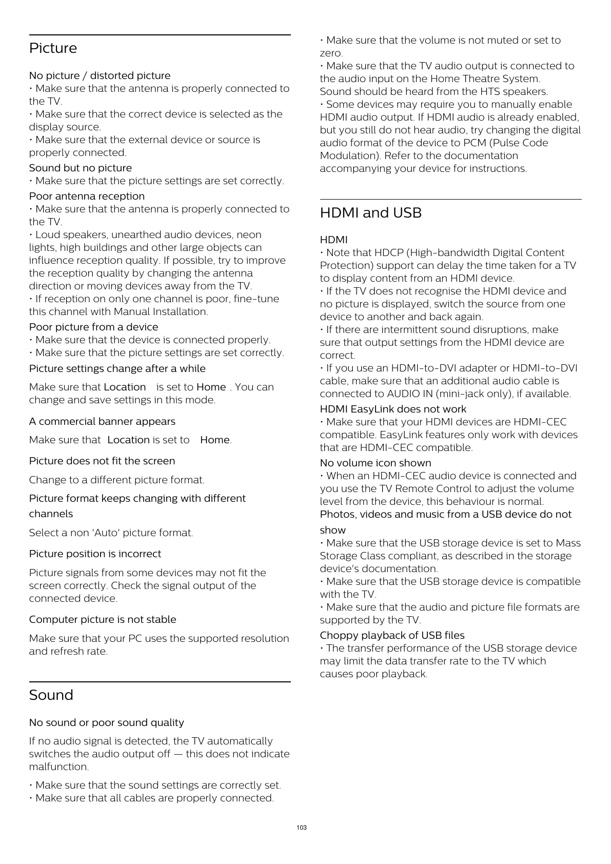 • Make sure that the picture settings are set correctly.