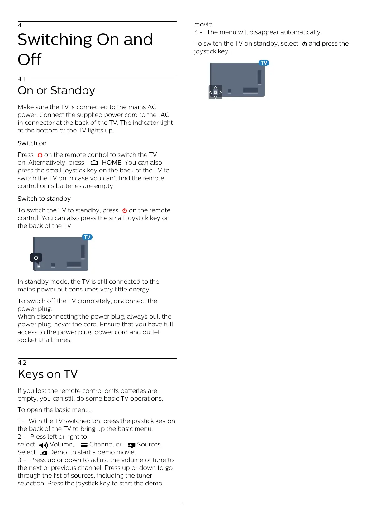 To switch off the TV completely, disconnect the