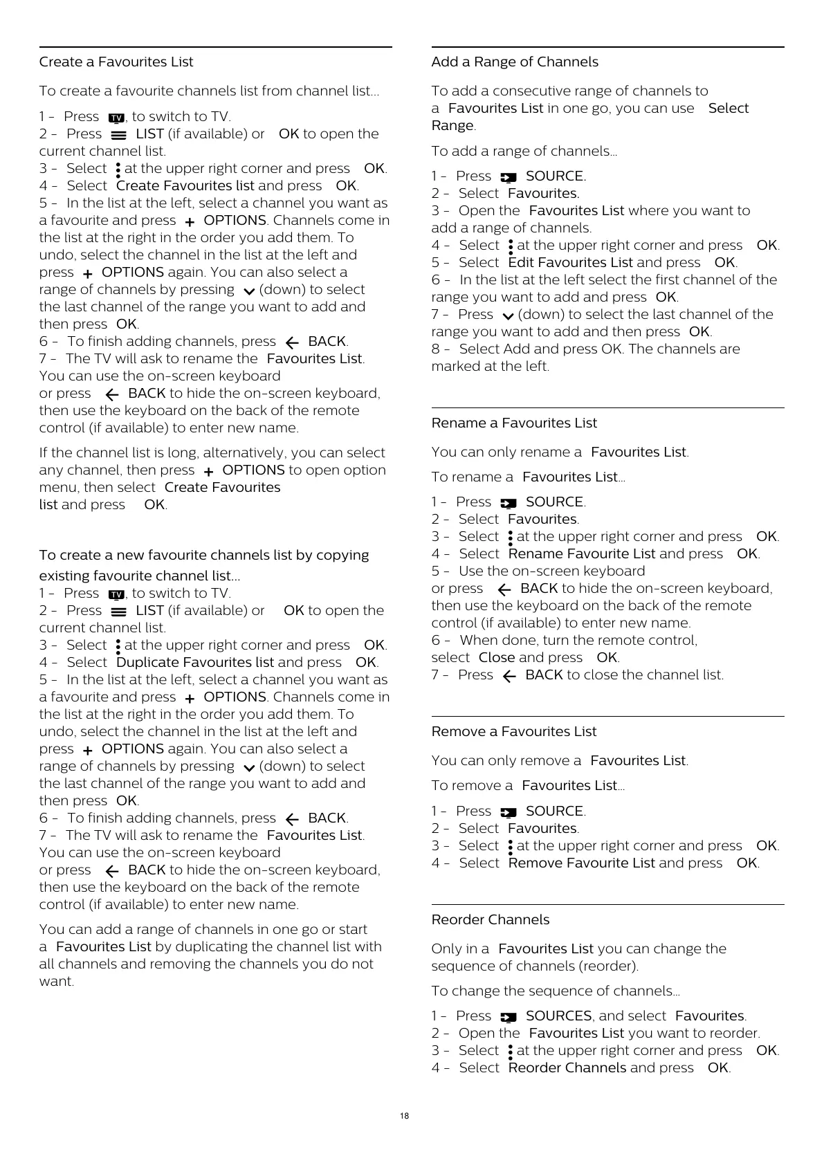 a Favourites List by duplicating the channel list with