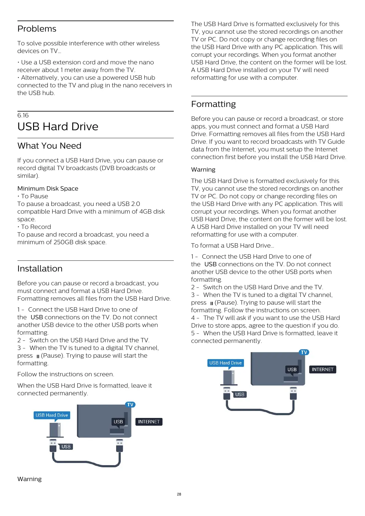 A USB Hard Drive installed on your TV will need