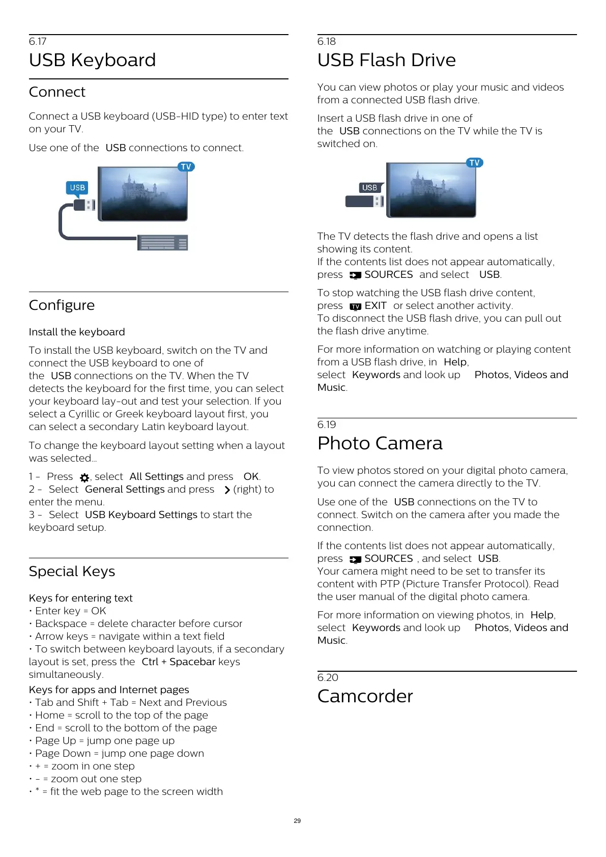 To install the USB keyboard, switch on the TV and