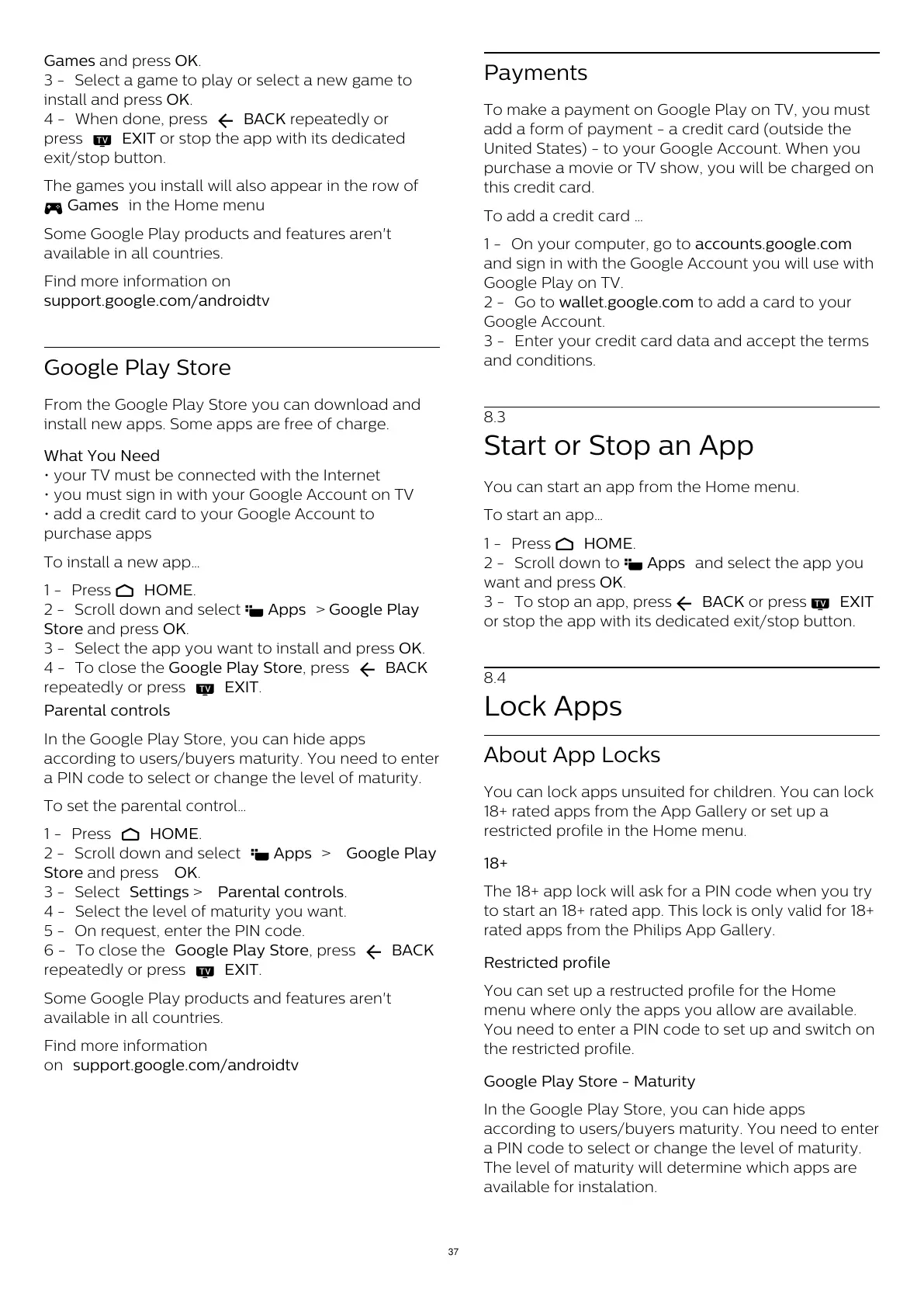 To make a payment on Google Play on TV, you must