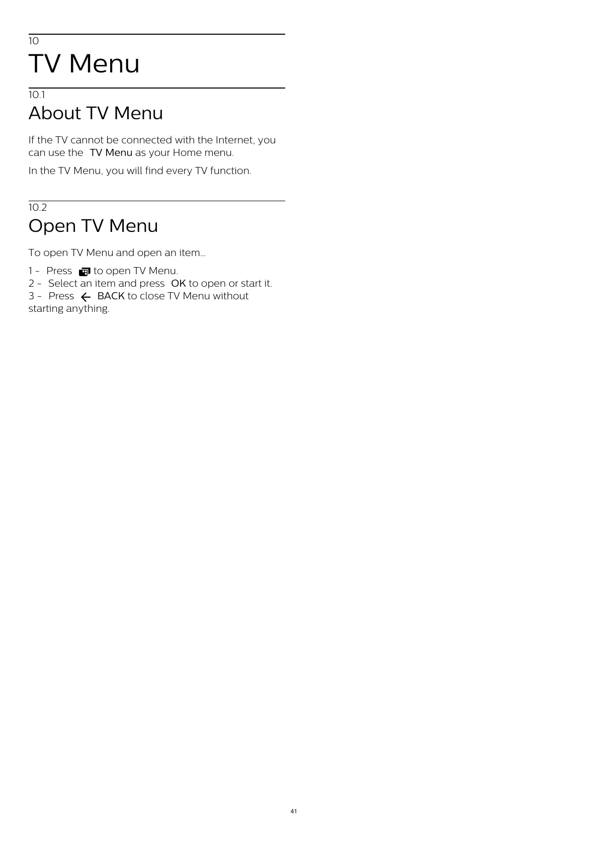 BACK to close TV Menu without