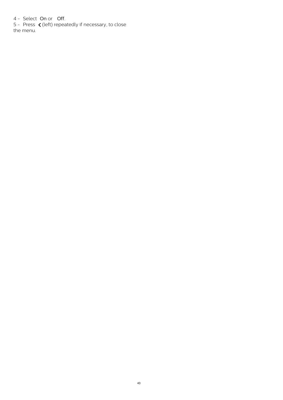 4 - Select On or Off.