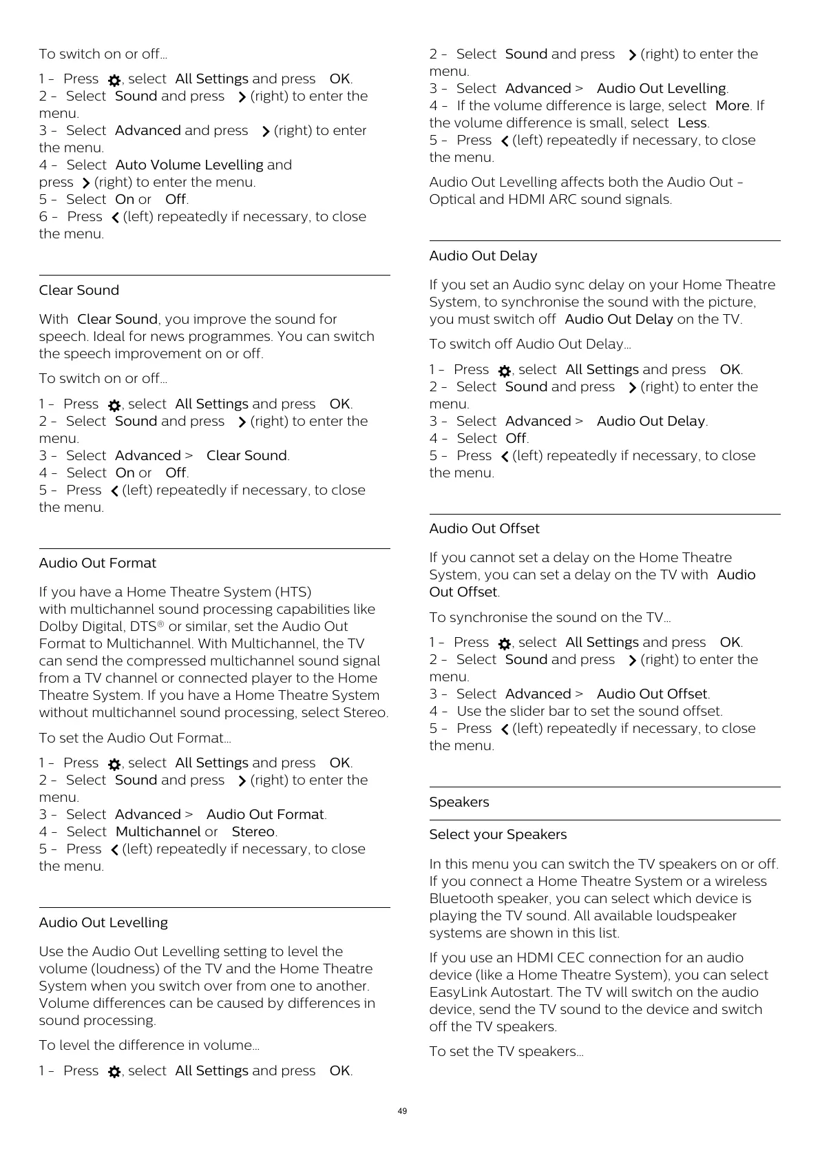 In this menu you can switch the TV speakers on or off.