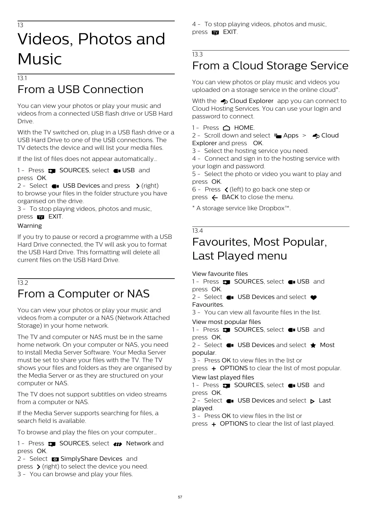 3 - To stop playing videos, photos and music,