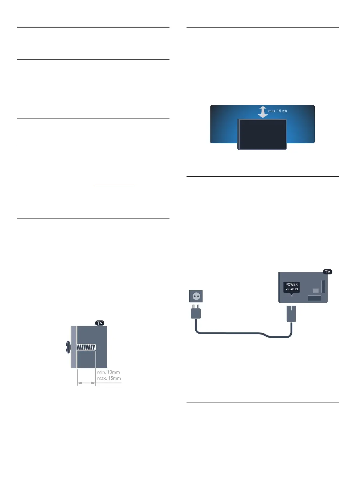 • Position the TV up to 15 cm away from the wall.