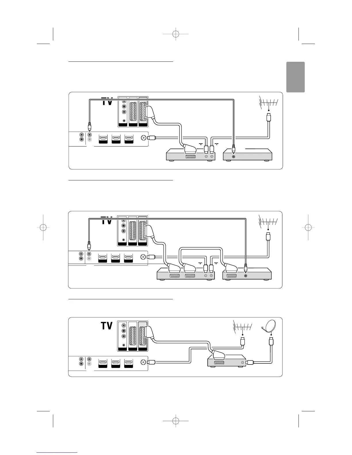 Use 2 scart cables, 2 antenna cables and 1 digital