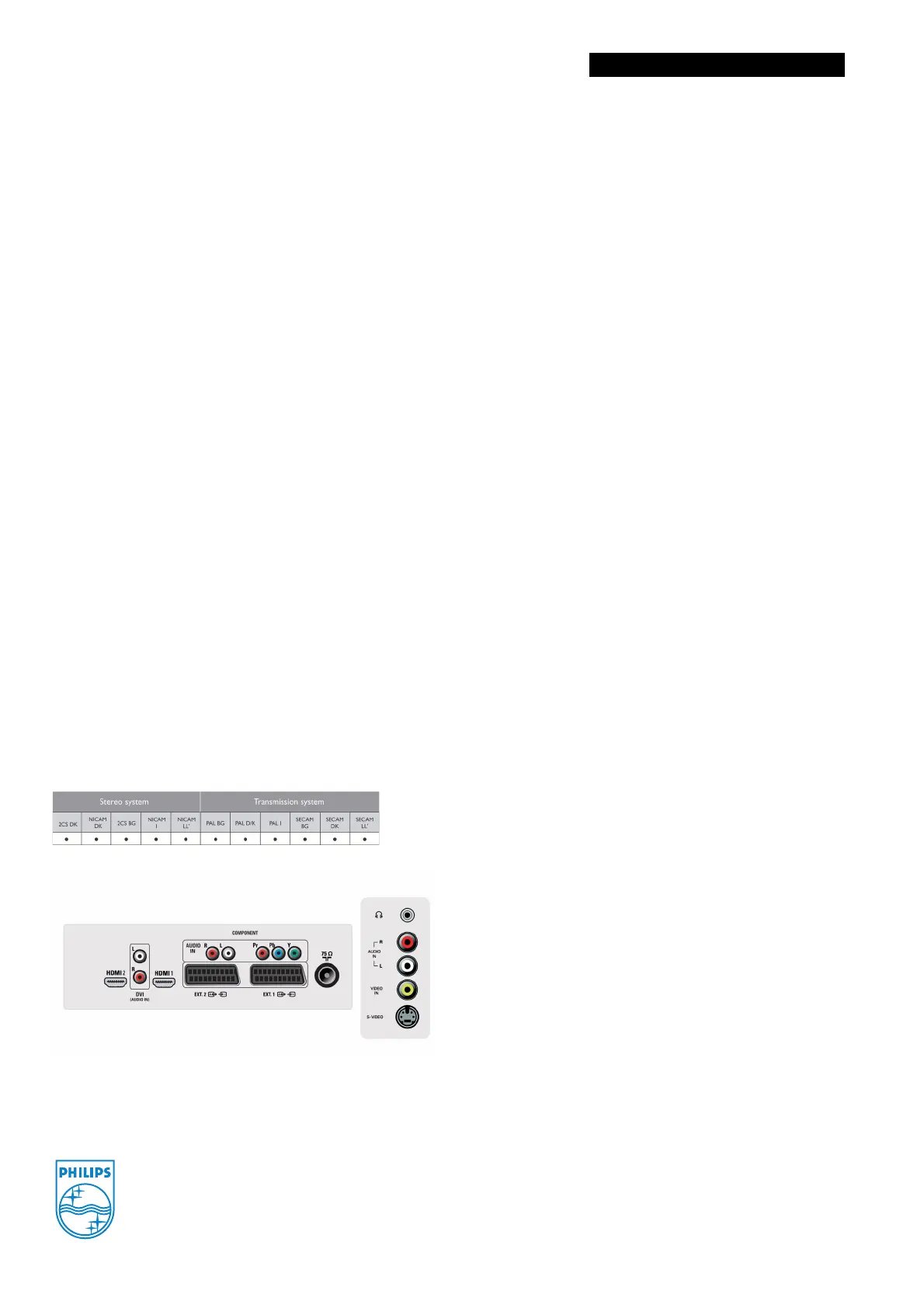 • Ext 1 Scart: Audio L/R, CVBS in/out, RGB