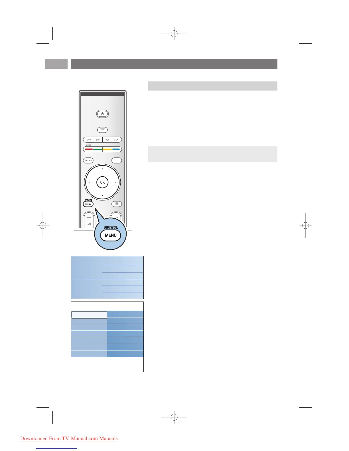 - TV menu allows you to access the TV menu. See