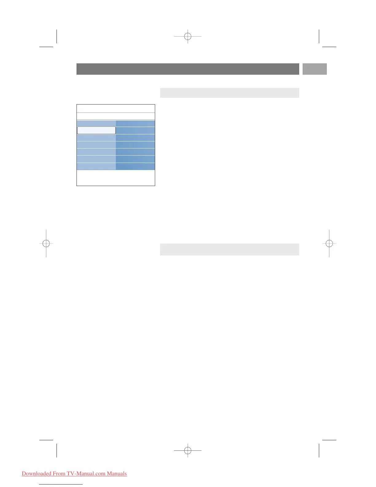 Use of the TV menu settings (continued)