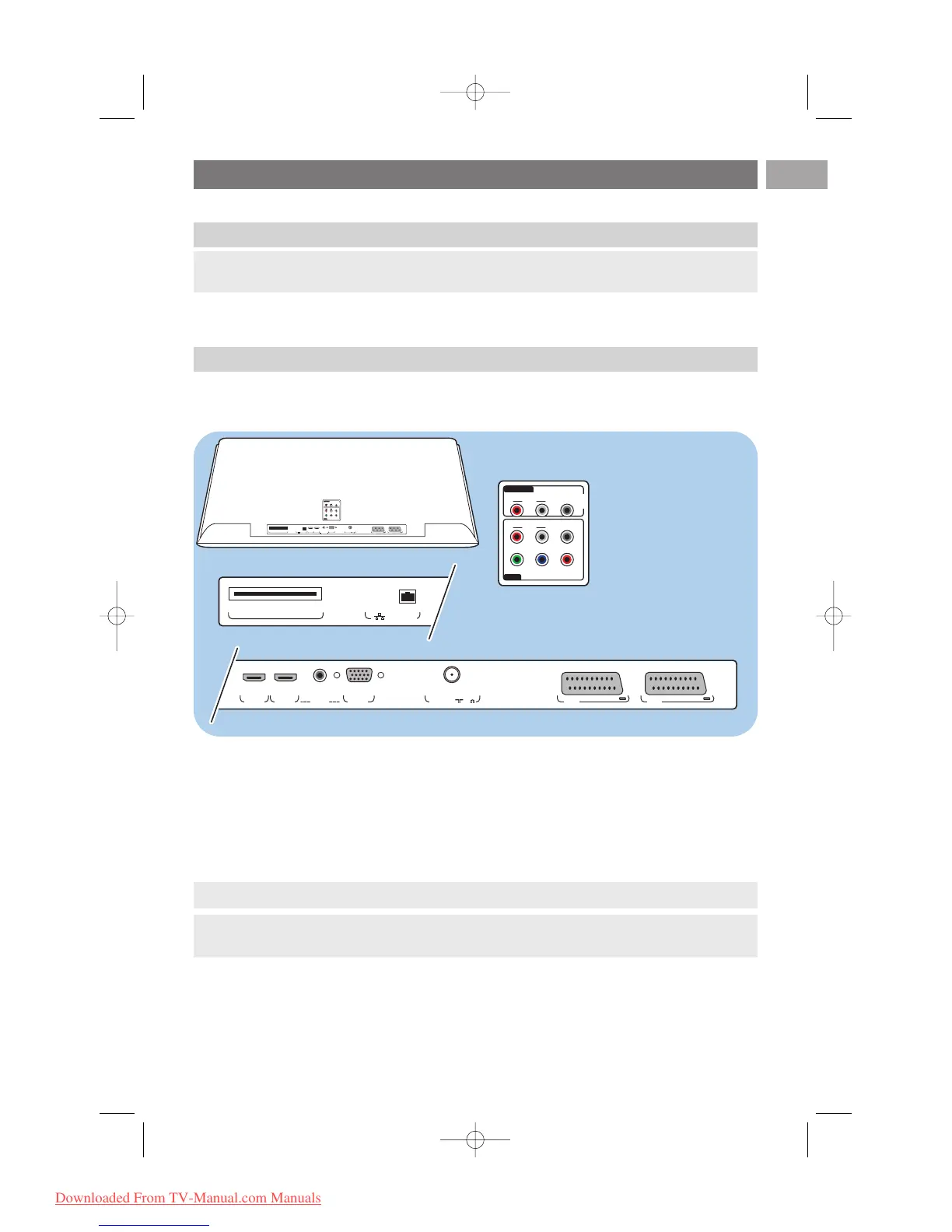 Before you switch on your TV, connect all your peripheral equipment. See To make video and audio