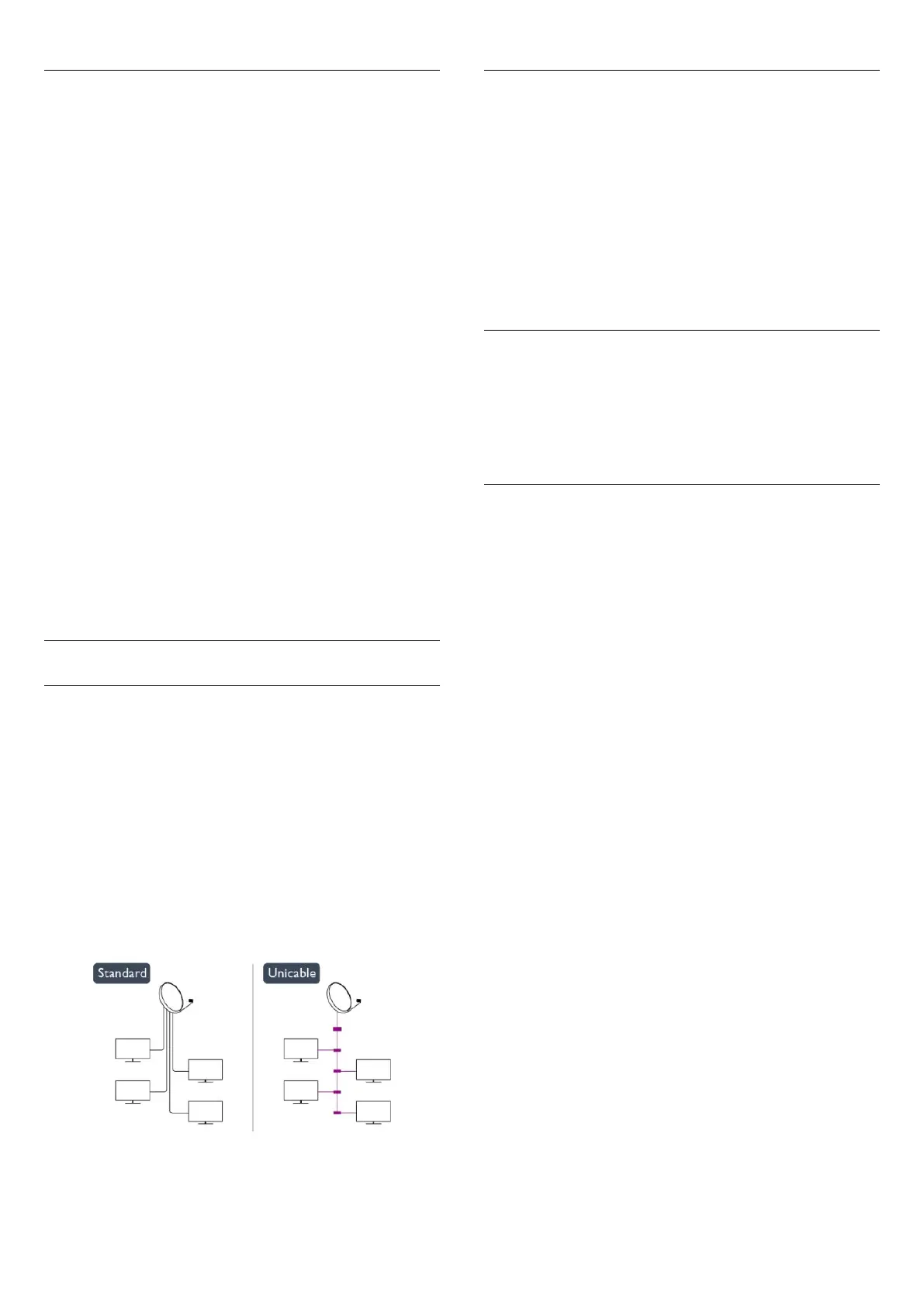 the TV. A Unicable system uses one cable to connect the