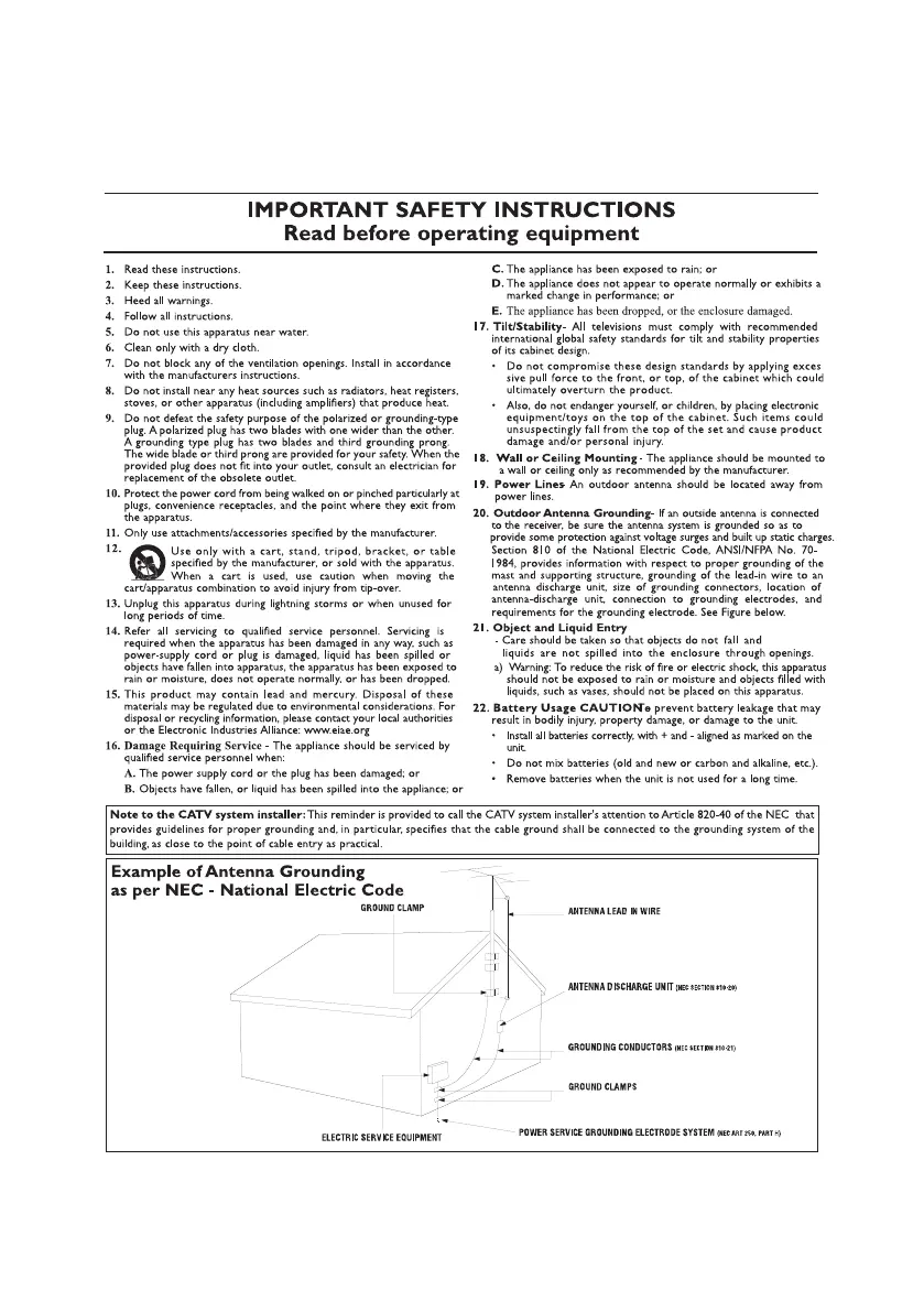 Philips 42PFL7342B/78 - Important Safety Instructions