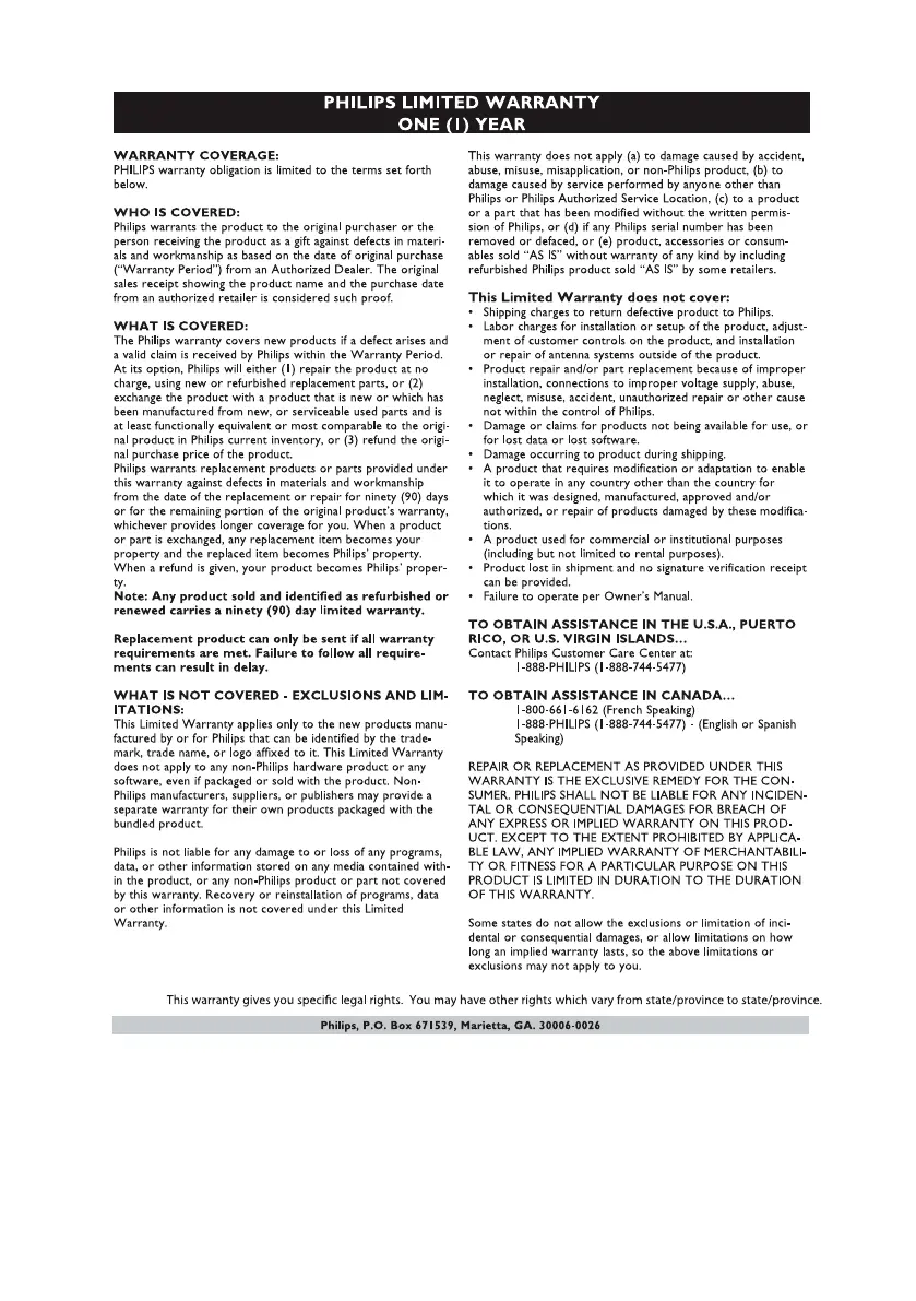 Philips 42PFL7342B/78 - Warranty Details & Service