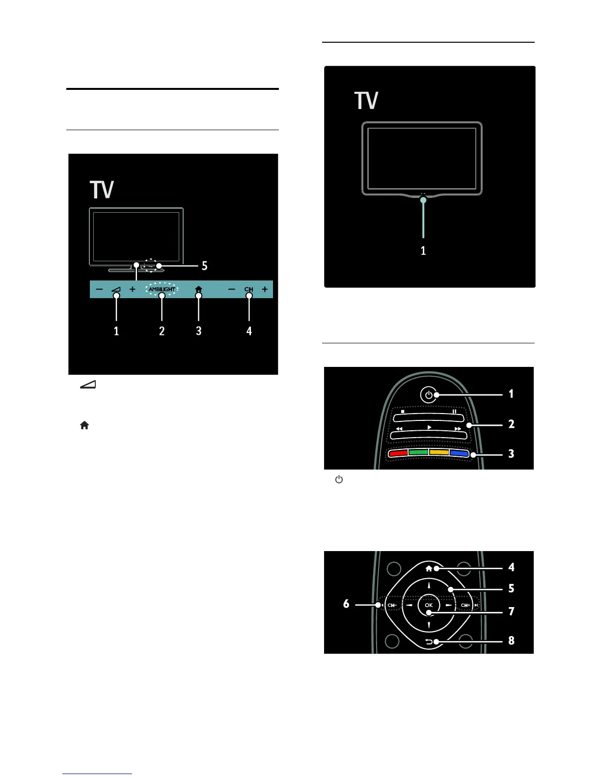 1. (Standby): Switch the TV on or to