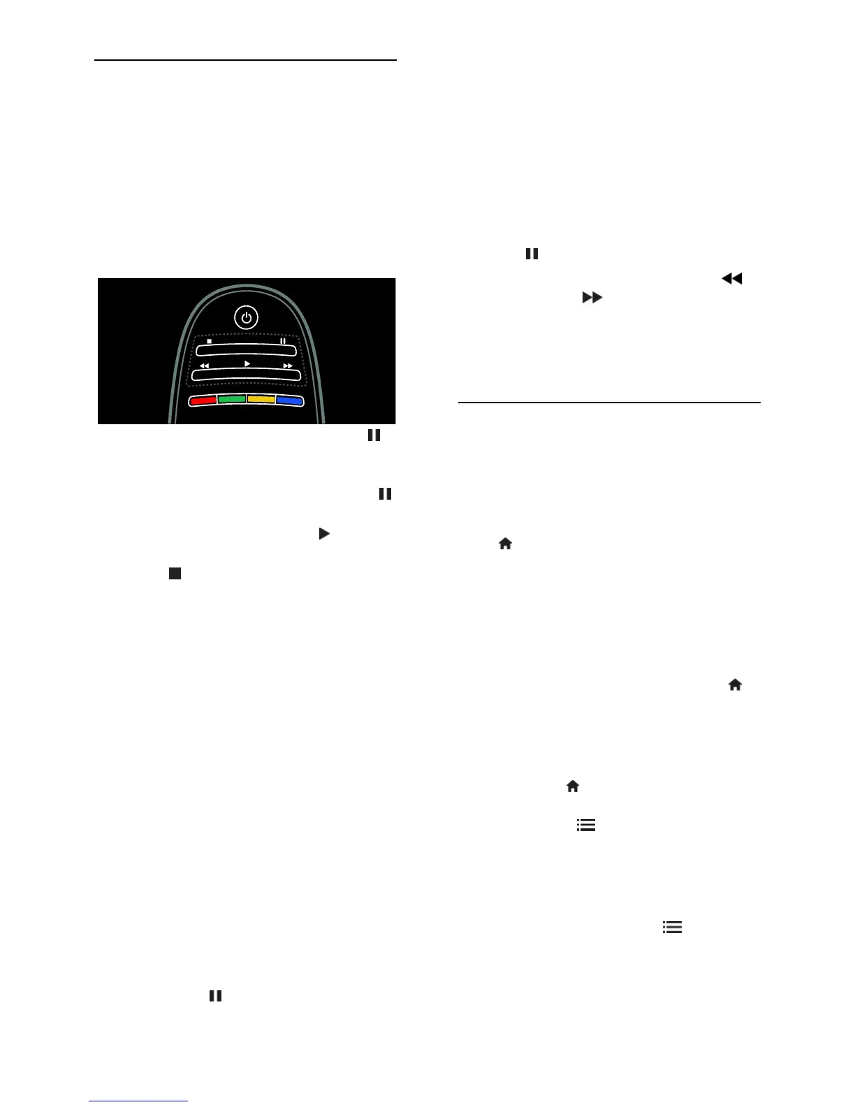 To pause a live TV broadcast, press
