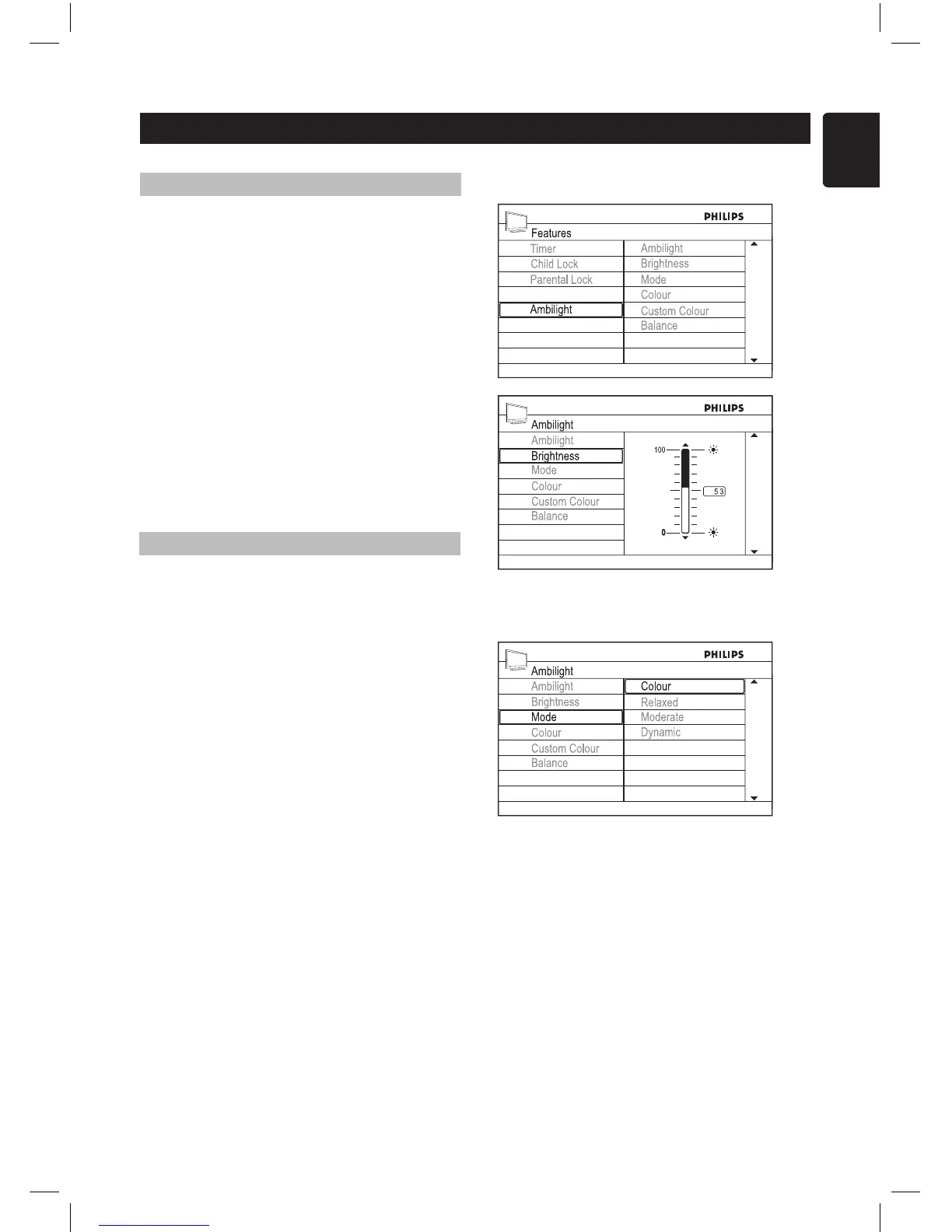 section of “Switching on Ambilight”.