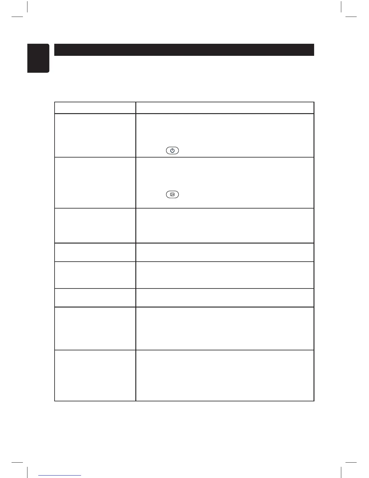 Symptom Possible solutions