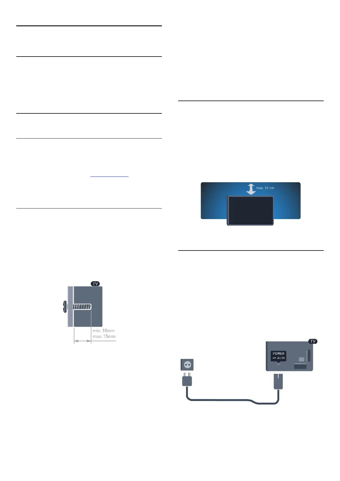 • Position the TV up to 15 cm away from the wall.