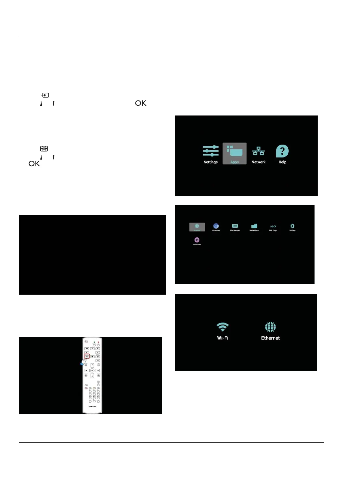 Admin mode will show four icons: “Settings”, “Apps”, “Network”