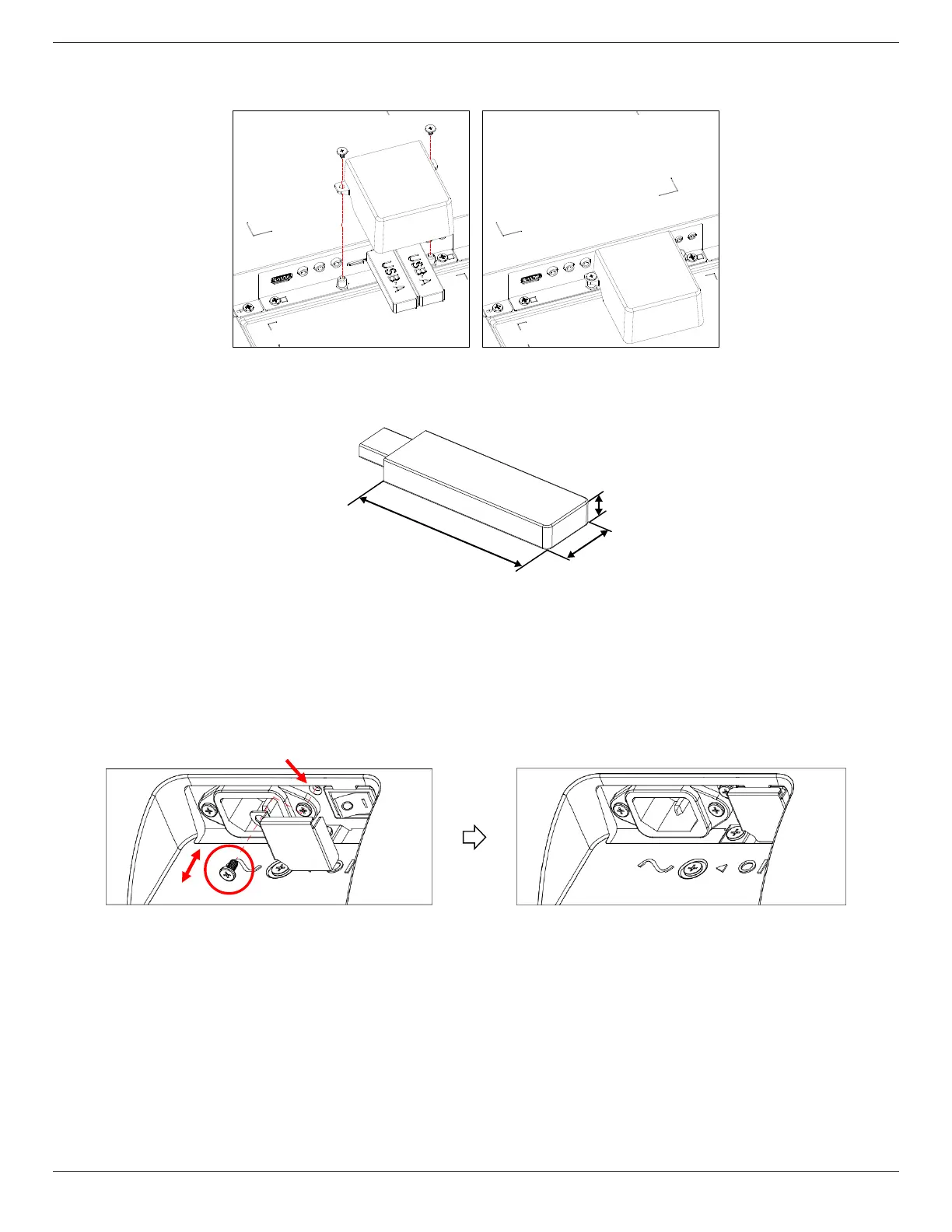 • Use the USB cover and screws to cover the USB stick and SD card.