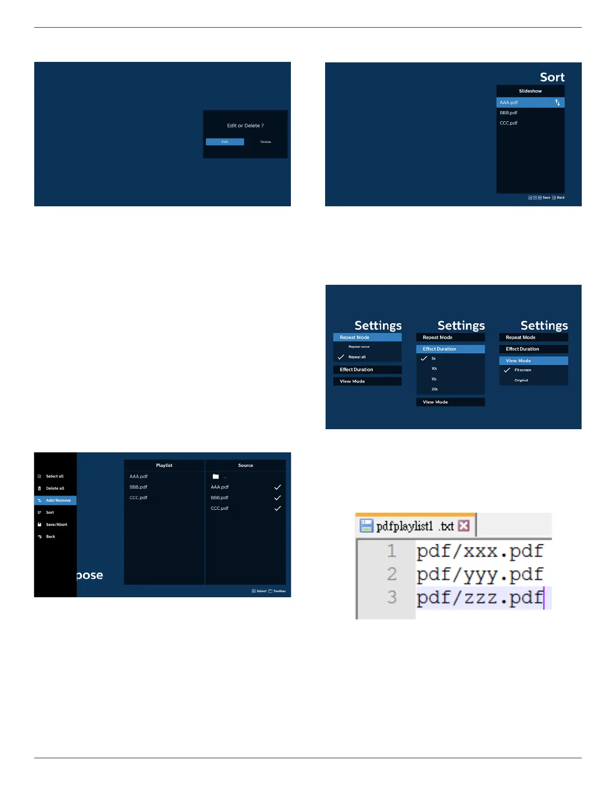 Ex. /storage/emulated/legacy/philips/pdfplaylist1.txt