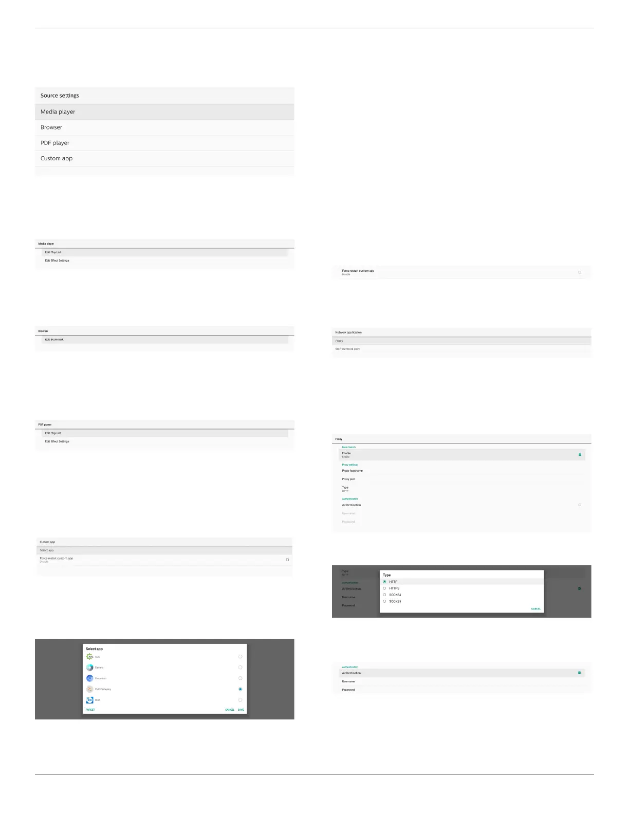 Settings -> Signage Display -> Network Application -> Proxy