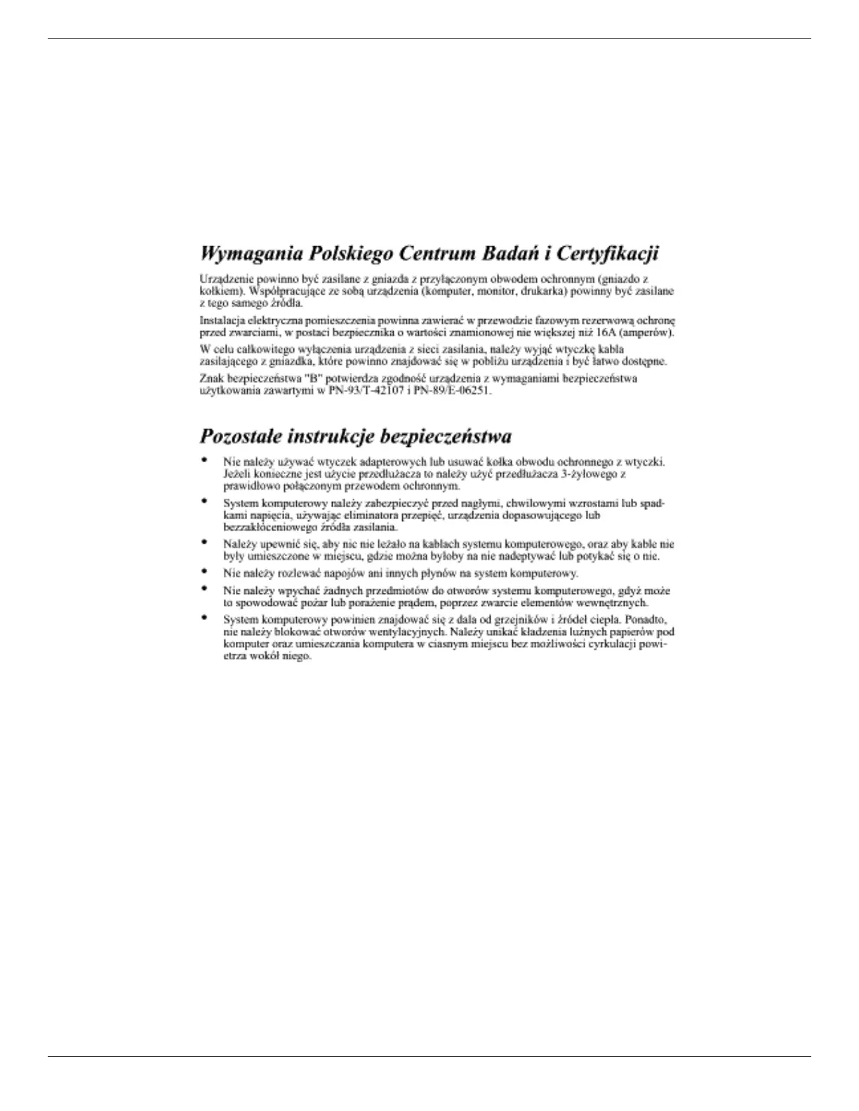 A protection mark “B” conrms that the equipment is in compliance with the protection usage requirements of standards PN-93/