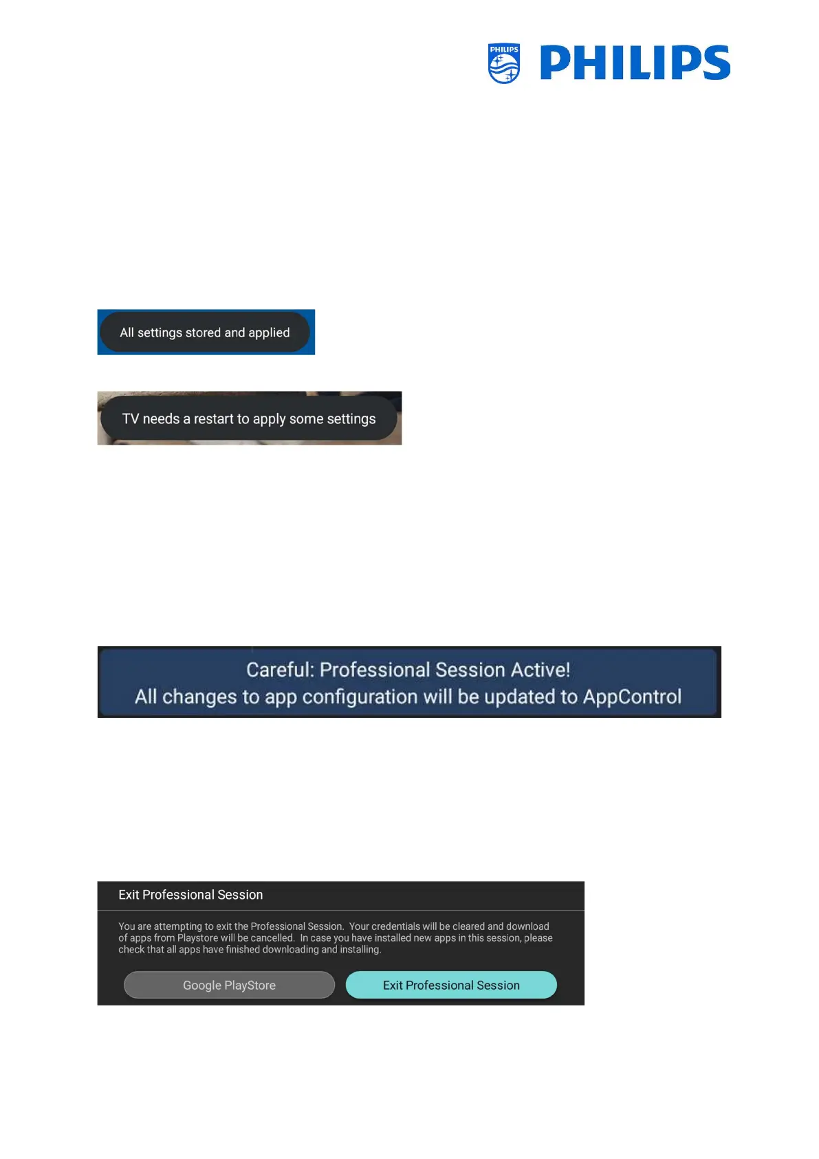 message if you are in professional or guest mode, the below message is displayed. The settings will