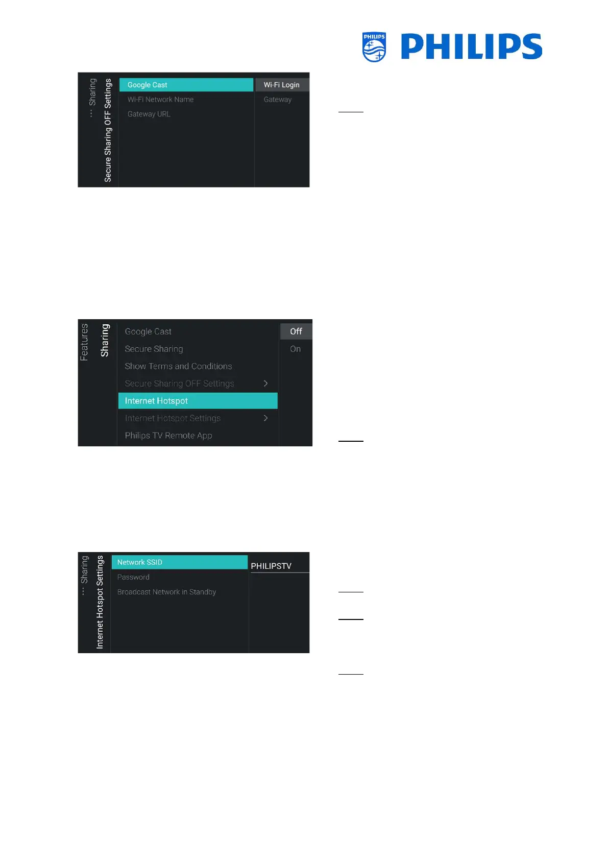 o [On]: Enable Internet Hotspot, this will