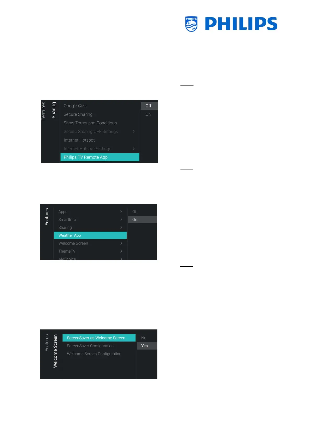 o [On]: Enable that the TV can be