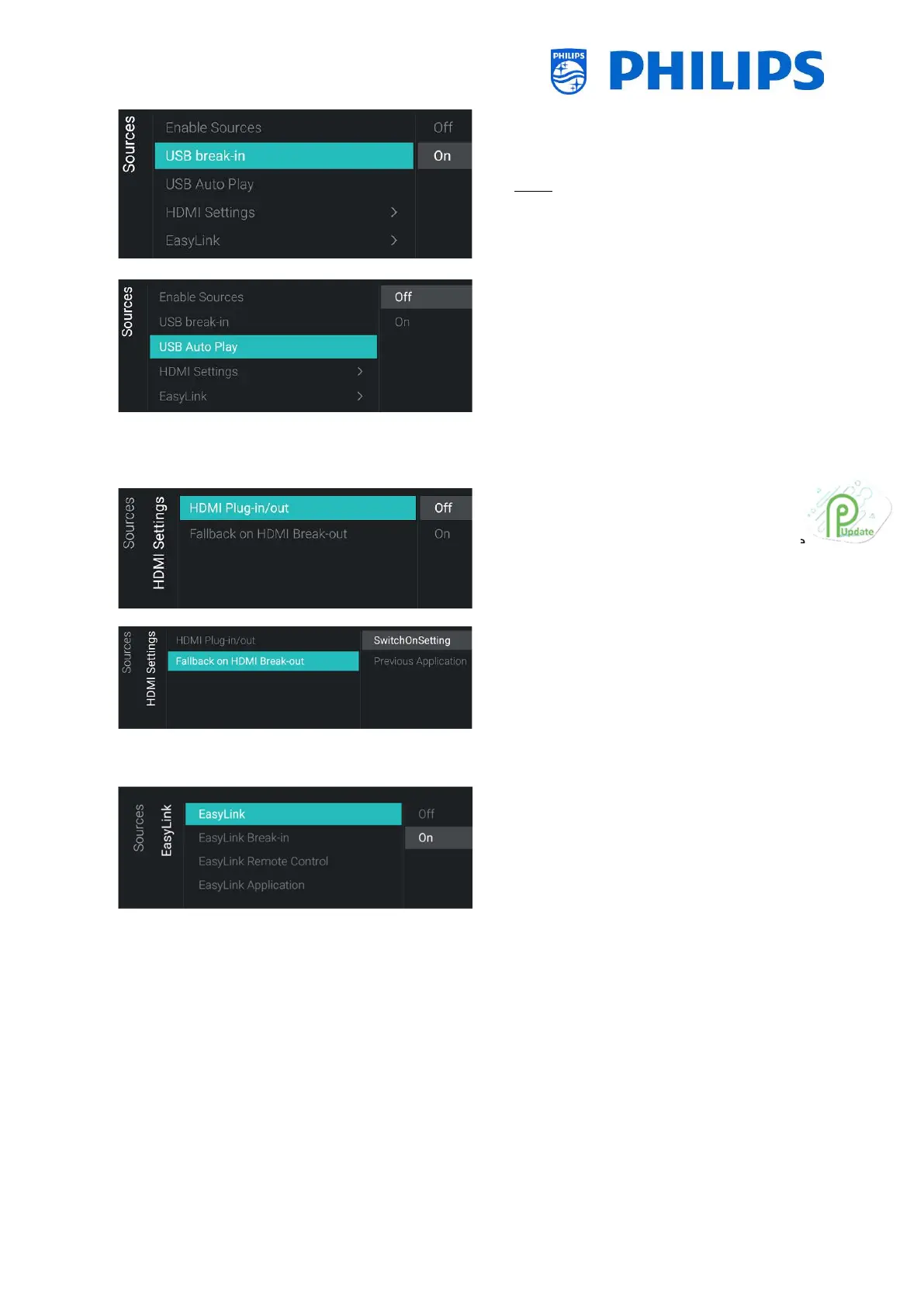 o [EasyLink Break-in]: TV shall disable